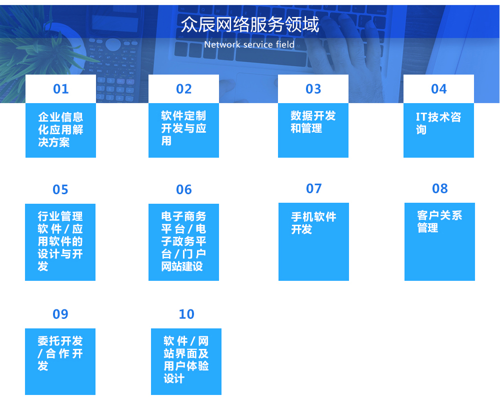众辰网络本着精益求精的工作作风,对每一步细微的流程都做到尽善尽美,包括客户售前咨询、接洽会晤、方案拟定、需求调研、需求分析、系统设计、代码编写、测试、质量检验、操作文档、操作培训、后期维护等都自始至终注重每一个细节,严格按照国际通用的软件开发行业标准来执行。对客户现有的工作流程进行改善优化,最大化地提高企业单位的信息化应用管理的利用率。
