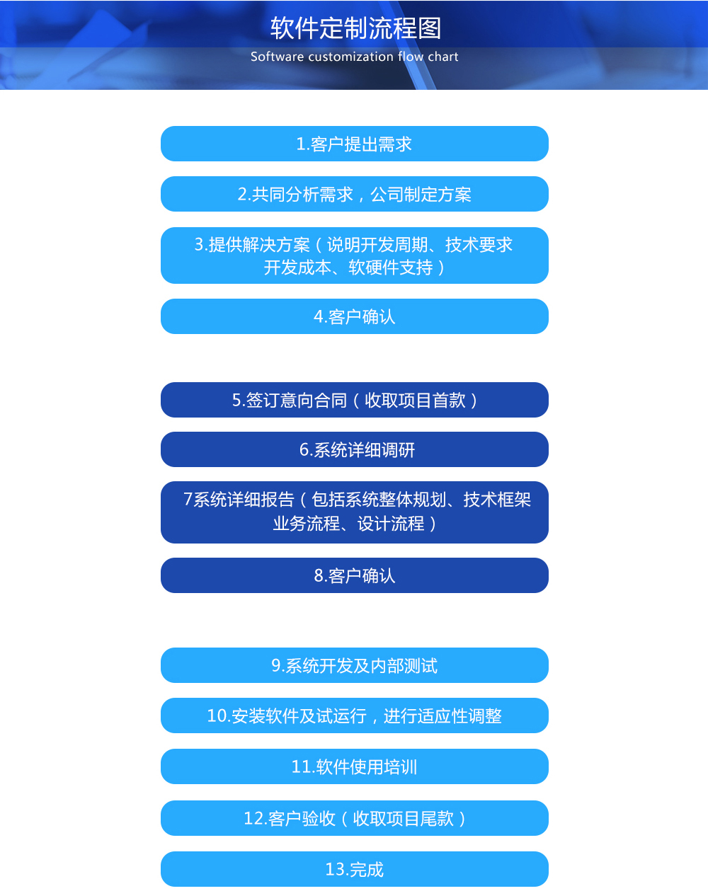 众辰网络软件开发团队已形成自己一套独特的项目开发模式,这套模式有效地解决了项目开发过程中的管理和控制难点,如众辰团队在软件开发项目中的需求管理、软件质量管理、项目进度管理等方面均走在同行前列。